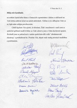 Na setkání iniciativy Společný hlas, která sdružuje křesťany, Židy a muslimy v České republice k vzájemnému poznávání, dialogu a spolupráci, se věřící těchto tří náboženství společně modlili za nemocného kardinála Vlka a poslali mu společný dopis. Kardinál Vlk, který se po několik let aktivně účastnil všech akcí této iniciativy, uveřejnil na svých internetových stránkách tento dopis i své poděkování.